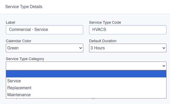 These categories are based on your Service Types.