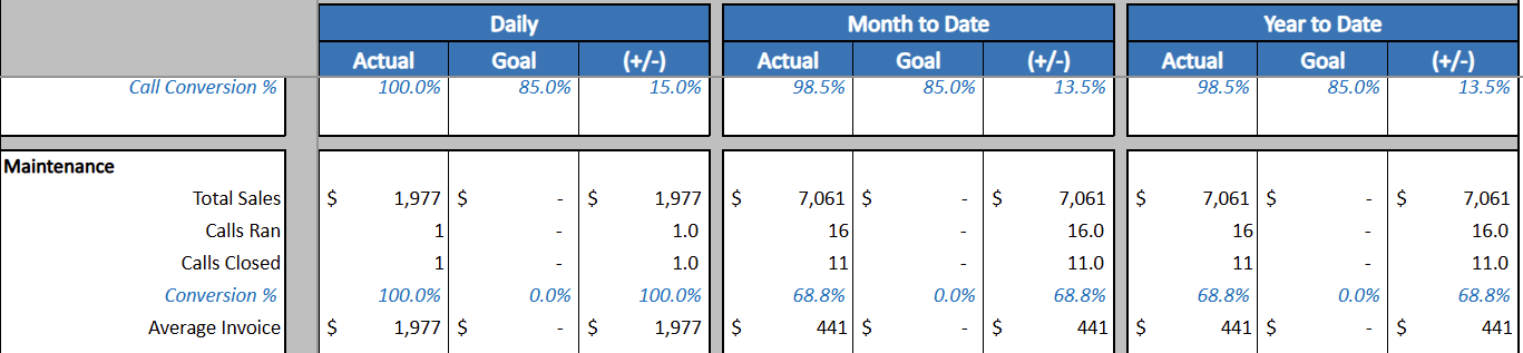A “sold” call is a job with an invoice total above your Sold Threshold for that business unit.