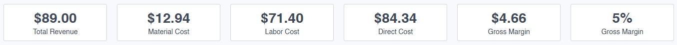 Open each job to see the materials added and the total material cost