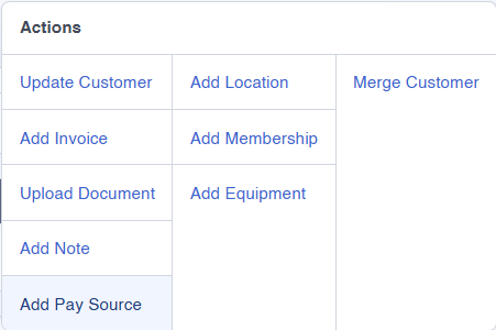 In the upper-right corner, click the “Actions” tab. From the menu, select “Add Pay Source.”