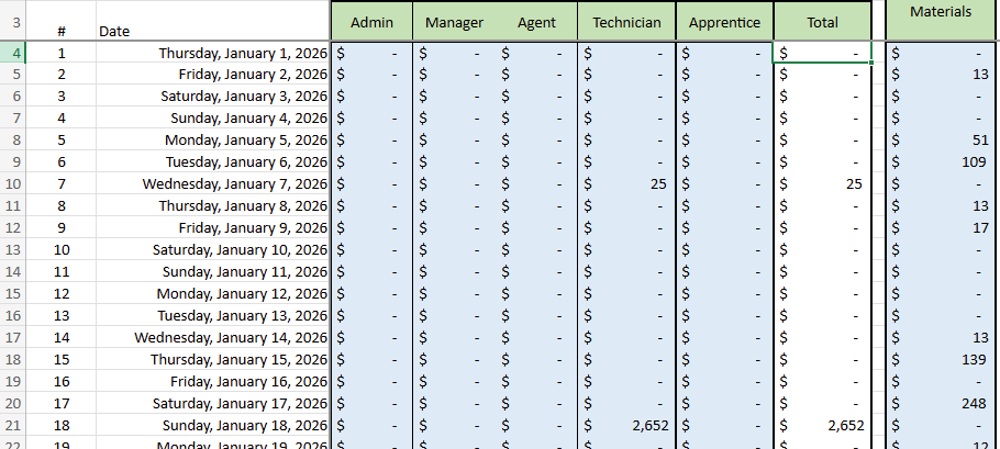 Enter the year you want to begin tracking in cell D6 (format: yyyy)