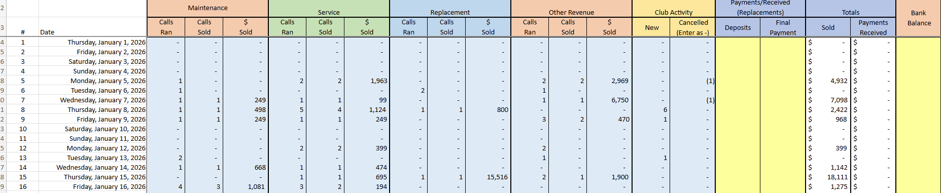 Once your SetUp and daily numbers are entered, the DMER tab becomes your main daily dashboard.